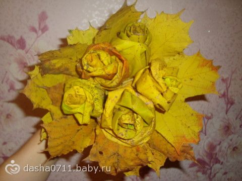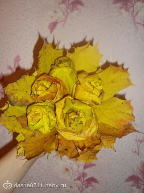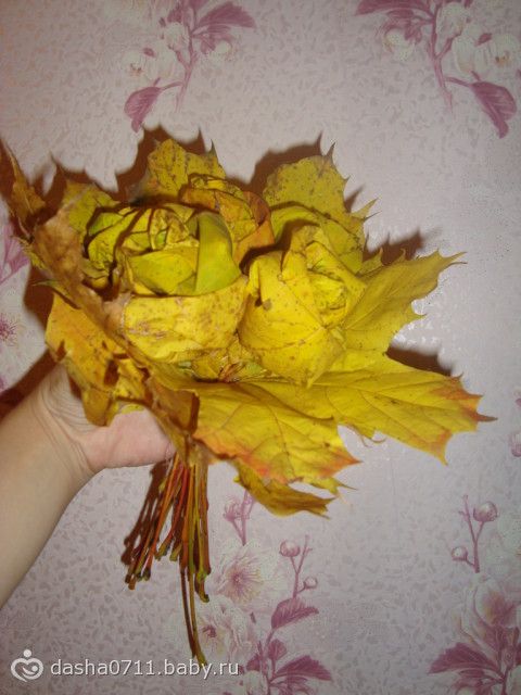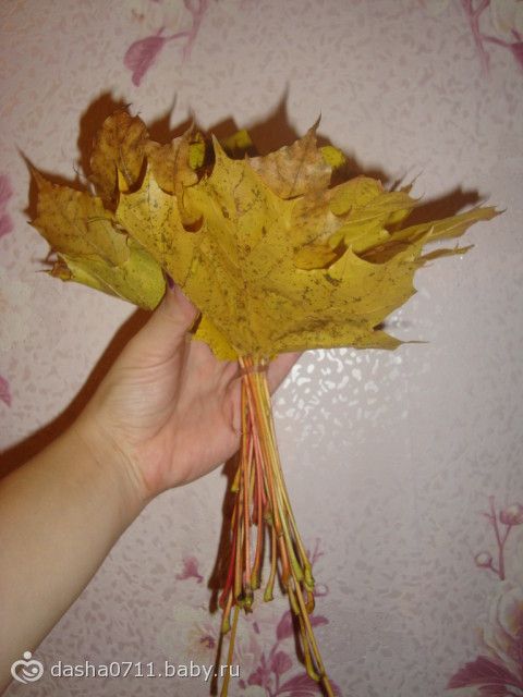 Целый час делала!!! При всём том, что доча, растаскивала листья, рвала их, Я их отбирала от неё ))) И просто так не отберёшь, слёзы ведь будут… вот так вот и делала этот букетик играя попутно с дочей…