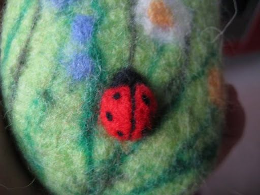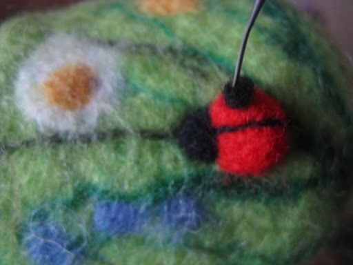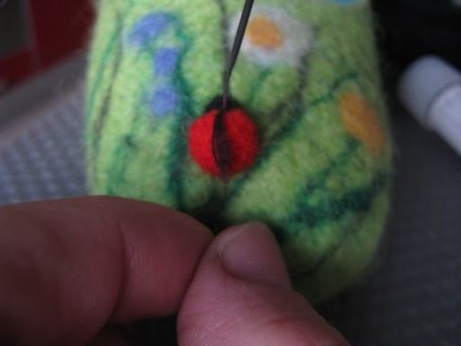 Дальше начинаем уплотнять наш комочек, формируя полусферу. Важно правильно работать иголкой — под прямым углом к поверхности, а то шарик сплющится и получим мы раздавленную божью коровку :(