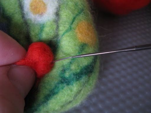 Этот шарик по периметру прибиваем иголочкой (я пользуюсь «звездой» № 38)