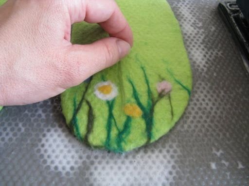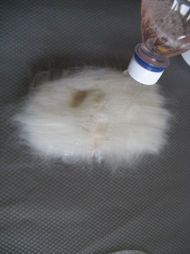 Выложили шерсть (3 слоя: вдоль-поперек-вдоль). Намочили, придавили, пожужжали, перевернули.