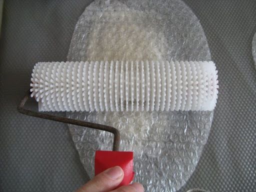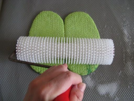 Дальше покатаем тапки со всех сторон чудо-валиком, так же подойдет какой-нибудь массажер, либо просто помассируем как следует ручками (это дольше… и ручки жалко на это тратить, так что массажер рулит!)