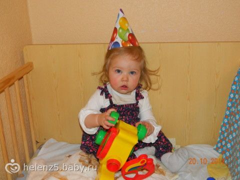Как-то даже и не верится, что уже годик нашей девочке. Отметили мы в субботу. В целом прошло хорошо. Я рассчитала, что Дашуля выспится к приходу гостей и весь вечер будет в благодушном настроении. Так и вышло. Ее комнату мы украсили воздушными шарами, поставили там горку и бассейн с шариками. Также там была ее любимая лошадка-качалка и развивающий столик. Так что деткам было чем заняться. Из неожиданного: в последний момент (за два часа) позвонили насколько гостей и сказали, что в силу каких-то причин не смогут придти. В их числе был и Дашин крестный. Я немного расстроилась. А потом решила, что в этот день пришли все, кто хотел придти. Стол получился хороший (спасибо моей маме, которая помогла), провели несколько конкурсов, поздравили Дашу, поели тортика (Дашенька тоже оценила :))