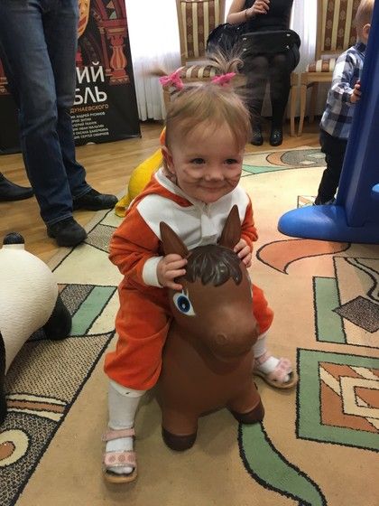 Сходили в детскую филармонию на елку. Теперь мне не жалко денег за билет, так как и представление отличное, и подарки хорошие. Даша участвовала во всех движухах ) Только все дети сидели спокойно на подушках смотрели спектакль, а Даша у сцены топталась ) Танцевала вместе с персонажами ) И даже деда мороза не испугалась, хотя я думала, что будет реветь )