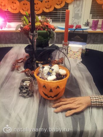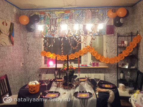 Мы были в костюмах (ну почти), но времени сфоткаться не было совсем. Я даже когда мелочь спать положила, пришла наверх и поняла, что я в платье, но в полосатых носках до сих пор))) Забыла совсем про туфли. Мы завтра идём «по-конфеткам», так что нас сфоткаю завтра. Муж сказал, что я крейзи, что столько наготовила. А для меня как-то мало даже) Правда посуды потом ойёёёё. Хорошо, что есть посудомойка)