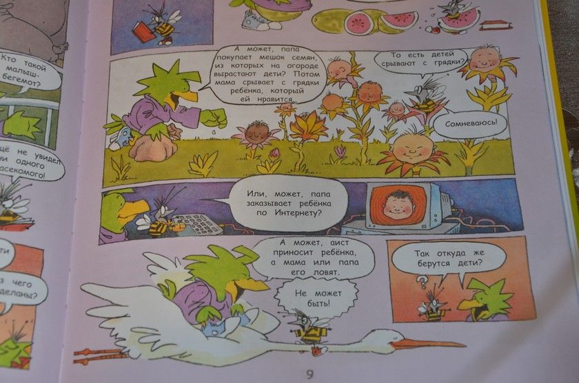 Приходит возраст, когда ребёнок начинает интересоваться, откуда берутся дети.И ответы, что из животика, уже не устраивают, хотят знать больше.Да и через какое-то время вдруг появляется в речи ребёнка такое загадочное слово Секс.И пока ребёнок доверяет родителям, то с этими вопросами и подходит к родителям.А вот не все настроены.умеют на такие вопросы отвечать.Орели стала интересоваться с лет 6 откуда берутся дети, а я искать книгу на будущее.Для 6-летнего ребёнка я спокойно могла всё объяснить, но понимала, что она взрослеет и однажды начнёт задавать вопросы.на которые я и захочу ответить правдиво, но просто как найти слова.чтобы не пошло и правдиво и подробно, чтобы не пошла узнавать не пойми где.В итоге я стала искать книгу.Чтобы и правдиво и в меру подробно и без пошлости и с картинками.Искала долго и нашла.