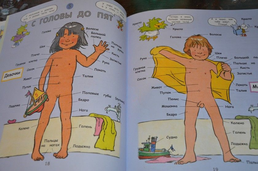 Постепенно переходим к частям тела голых детей, но рисунки не пошлые и начинаются с того, чем мальчики и девочки похожи.