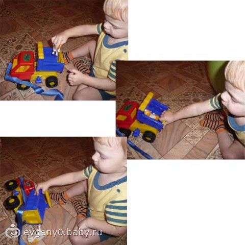 Вознаградила его за старания игрой с грузовиком и котом, сейчас частенько так играет сам, пытается рассказывать стихотворения.