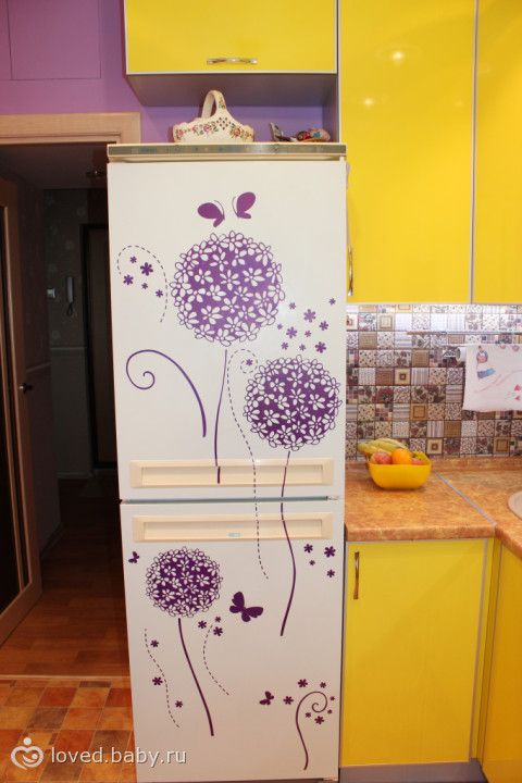 Холодильник мой я вам уже показывала, после того как его за декорировала. До этого он был абсолютно обычные, белый, с кучей магнитиков привезенных со всех концов света. Вот пост как я делала декор