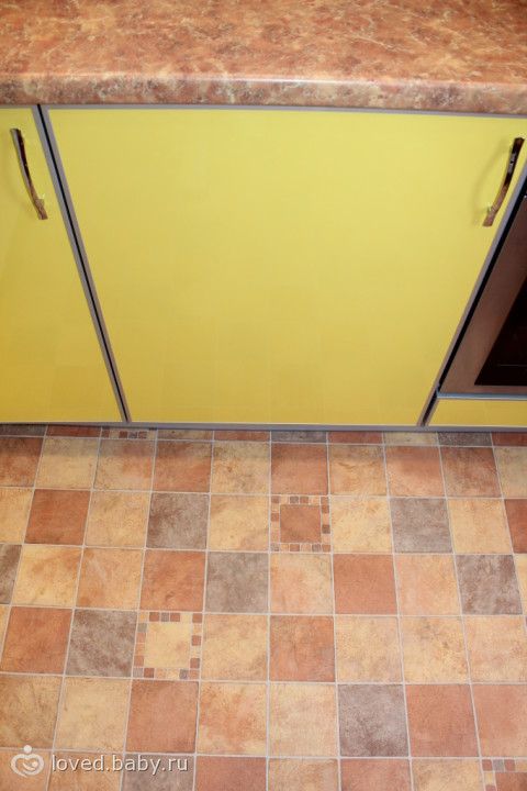 Это кухонный пол. Это линолеум. Сделан под плитку. Очень классный пол получился. Цвет подбирали специально, чтобы он сочетался со столешницей.