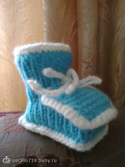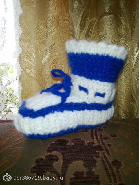 А я когда вязала свои первые пинетки, они у меня все разных размеров получаились — три штуки на разный размер)))).