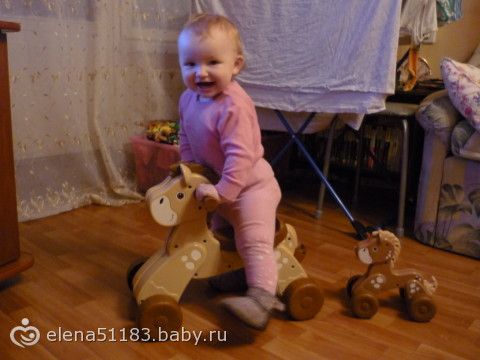 мы хотим каталку-ходилку. Такой транспорт, где деть сам ногами толкается, а на спинке держалка -чтоб ходить за этой штукой деть мог сам. Мы просто не ходим сами еще