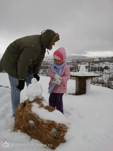 ах да, дочка поливает снеговика-чтоб он замекрз)))))