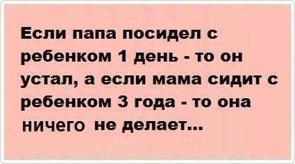 неа, папа не устает, и очень уважает маму и вечером убирает, готовит и играет с ребенком, а мама отдыхает) это банальный дем, не истина)