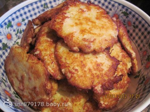 1кг.картошки и 2луковицы натереть на мелкой терке, выдавить 2зуб.чеснока,1яйцо, мелко порезанные кусочки куринного филе, сыр на крупной терке, посолить, поперчить и размешать! Жарить как обычные драники!