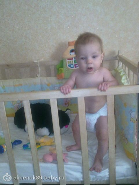 Вставать в кроватке начал в 5 мес, точнее ровно за 1 неделю до! И тут началось… Вставал, падал, плакал, сразу опять вставал. Ловить не всегда удавалось, так как вставал ночью, когда все спят тоже) Бился об кроватку… Но ниче страшного, тьфу тьфу тьфу.