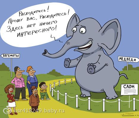 — Мамочка, вот это — страус, это — жираф, а это — слон, а между ног у него — что попало.