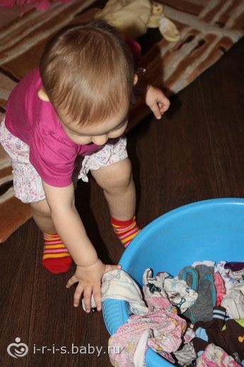 а потом Ариша помогала маме стираться: