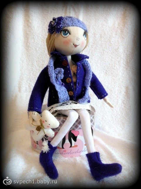 Очень долго хотела её шить! Но решилась-таки! 35см она ростом, колготки сшила из трикотажа, шапка-шарф-связала, пальто и обувь сшила из польтового отреза.Глаза первый раз рисовала-уфффф. Платье не снимется- у меня прогресс!