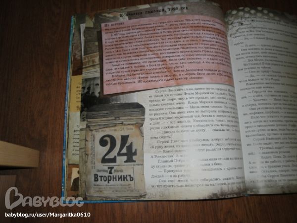 Комментарии на полях рассказывают о важных исторических событиях и о повседневной жизни в России начала ХХ века, о реформах календаря и орфографии, о том, чем же все-таки Дед Мороз провинился перед Советской властью и о многом-многом другом. Многочисленные клапаны и подвижные элементы, разнообразные объемные конструкции и открытки в подарок помогают передать обаяние ушедшей эпохи, увидеть ее своими глазами.