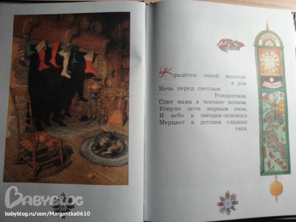 Сыну ещё одну книгу про Рождество, там замечательные картинки, а содержание представлено одним стихотворением всего лишь, но он у нас сейчас любит как он говорит где «буковок пменьше»… к сожалению… но читает и это радует!