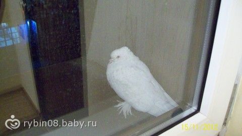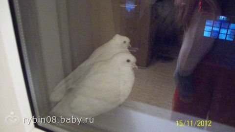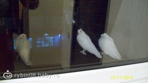 на подоконик сидят 3 голубя белых, насыпала им семочек, даже не испугались когда окно открыла, они какие то породистые, на лапхах перья в разные стороны торчат
