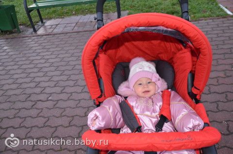 Плюсы: очень маневренная, легкая в управлении, просторная, ребенок в ней просто растекся и сидит спокойно! Также ребенка видно, т к часть капора прозрачная! Для меня это было важно, я не могла ее отпустить никак, до последнего на прошлой прогулке катала лицом к себе! Легко складывается и собирается, мягкая ручка, но увы из-за переднего тормоза нет возможности использовать муфту.