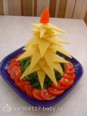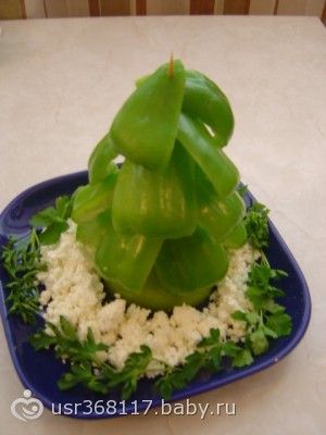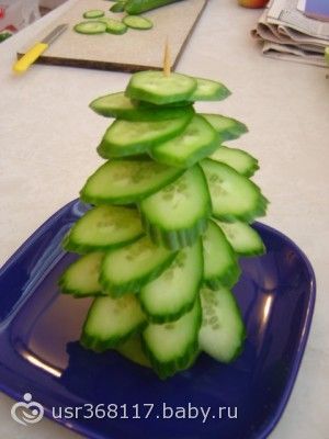 6) Зубочисткой наметить «волну» в центре салата, стопкой — кружочки.