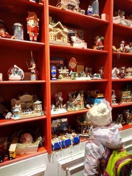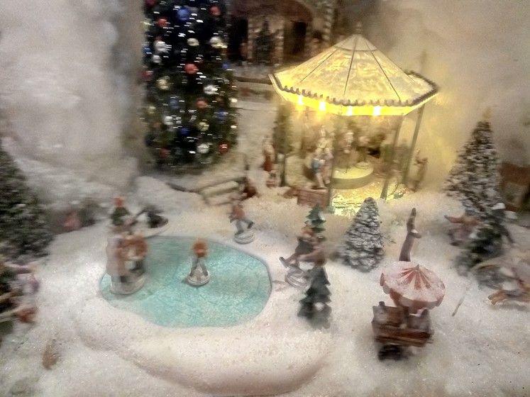 Среди павильонов обнаружили магазин игрушек с увлекательными витринами — макетами праздничного города. Тут двигались карусели, катки, паровозики. Мы там позалипали...