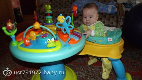 Долго думали и в итоге купили вот такой подарок. Мы НЕ СОБИРАЕМСЯ его там держать ЦЕЛЫЙ ДЕНЬ, а так МИНУТ на 20 в день, по кругу побегать, да с игрушками поиграться. А как подрастёт, бегательную часть открепим и будет просто столик стоять. Вещь здоровская, мне очень понравилась. Малыш пока недоумевает что в ней делать, но не капризничает. Кстати, собрала его я сама, пока муж на работе был. Почувствовала себя ребёнком с большим конструктором