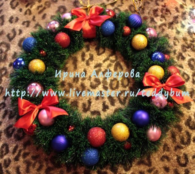 Наш новогодний веночек готов! Осталось его только повесить =)