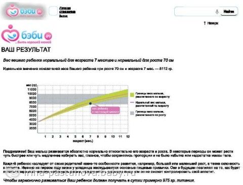 сходили мы на взвешивание рост 70 см в норме а вес 7800 это мало! должны весит 8500! ну чего мне делать если она активная уже на ходунках ходит пытается ползать прыгает на руках! кушает тоже хорошо и кашки и грудь и пюрешки всякие! а врачи говорят кормите лучше! а по табличке бэбика у нас все нормально!!
