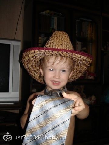 Мой старшенький в дедушкиной шляпе и папином галстуке)))