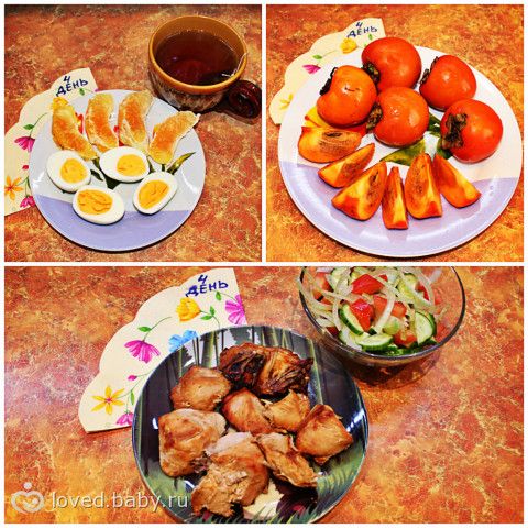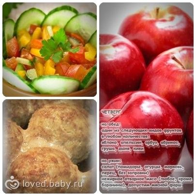 Ужин: жареное или отварное мясо (ломтики или фарш без жира), кроме баранины.