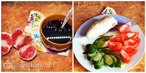 Ужин: жареное или отварное мясо (ломтики или фарш без жира), кроме баранины.