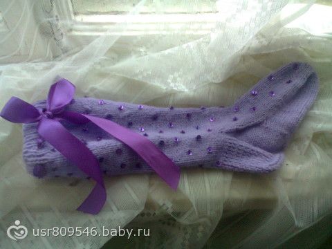 Подарок практически готов, осталось до конца пришить паетки на втором гольфике