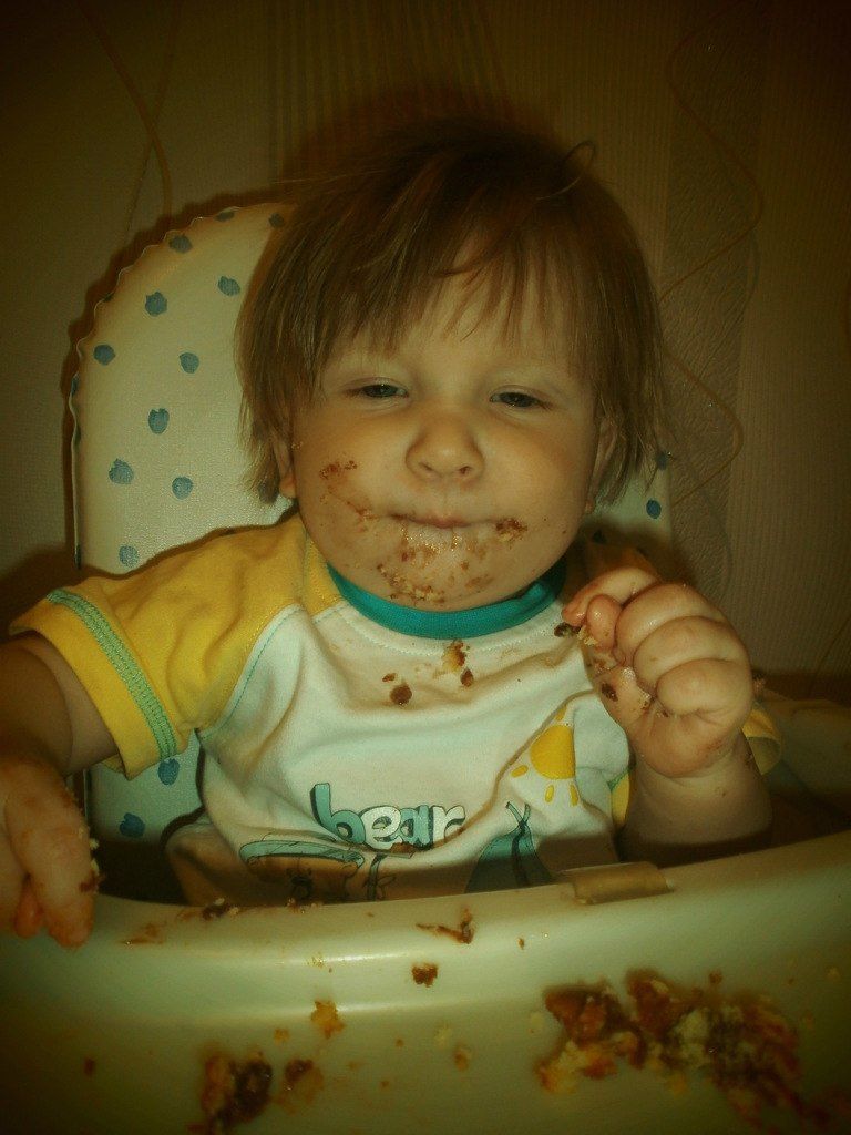 Второй праздник это 8 месяцев нашему сыночку_) Сегодня кушал Барни… ахаха его моська была вся в нём)