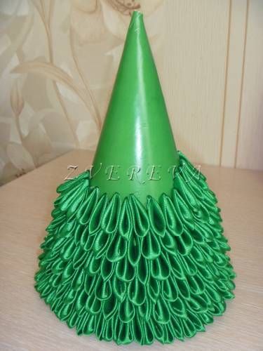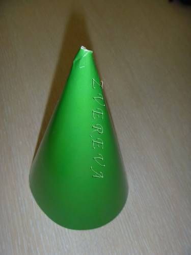 Делаем из картона конус, это будет основа нашей будущей елочки.