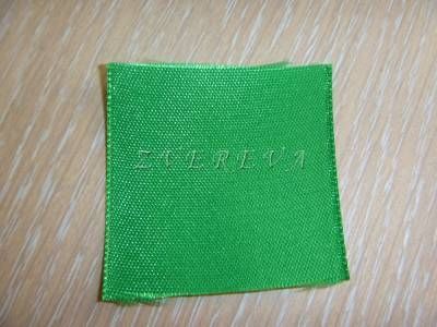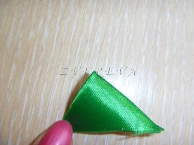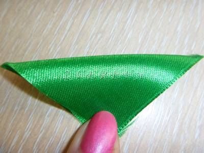 Теперь приступаем к изготовлению иголочек елки. Нарезаем атласную ленту на квадраты.