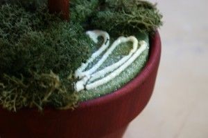 Крепим пластилин на нужной высоте, чтобы он держал наши кружки-ветви.