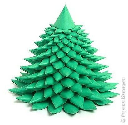 8. Сверху получившейся ёлочки прикрепи конус из бумаги.