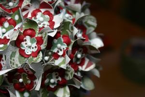 6. When the magazine is completely folded glue the front and back pages together. Spray tree with paint, and sprinkle glitter while still wet. Glue a star to the top.