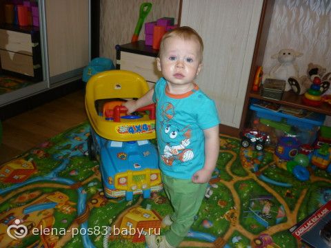 Ну вот и прошел еще один месяц, мы подросли и стали взрослее!!! Наконец-то прошел насморк из-за которого мы уже дней 10 не гуляем. Стали говорить больше, но пока в основном слоги: ка-ка, ня-ня, ля-ля, дя-дя, и шипяшие звуки, дзь-дзь — это у нас блендер, машинка стиральная работает, кшь-кшь — это он на увлажнитель так говорит, ксь-ксь — киса ну и тому подобное… Мы не любим играть одни, только когда с нами мама, папа или баба играет. Кушает хорошо, любит смотреть когда каша вариться, рыбок в аквариуме разглядывает, любит играть со свякой кухонной утварью, катать свою машинку, крутить юлу и бегать от мамы по квартире!!! Сейчас у нас вылез 12-тый зуб, клычок снизу и еще один или два на подходе. Вот такие мы сейчас.