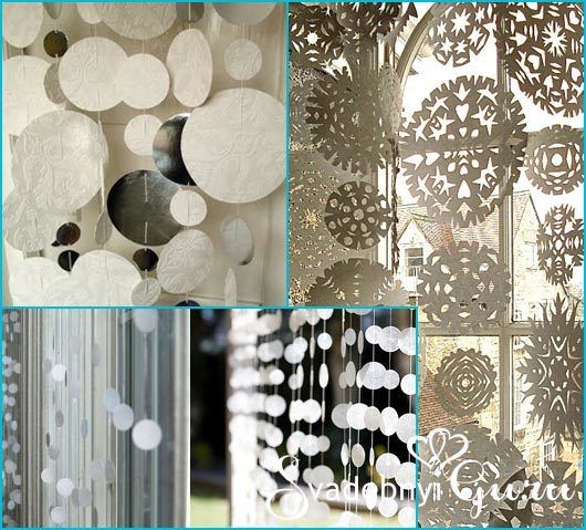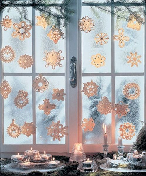 1. Вырезаем снежинки(Развешиваем на нитках по квартире(из картона). На елку, На окна — маленькие, можно из фетра)