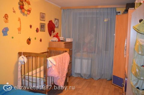 а это наша спальня… тут все устроино под Варю, на стенах наклейки и много вышивок, которые я делала во время беременности.
