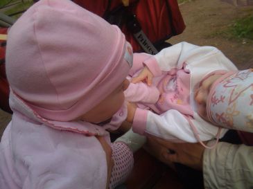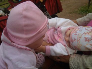 А сегодня мы опять встретились и уже решили непосредственно познакомить наших дочек=) блин так здорово было посадили девчонок себе на на коленки и они начали друг друга щупать за ручки=) это так мило и непосредственно выглядело=))))) потом Юля взяла Полину за щеку, а та так засмеялась=)))))) вот так познакомились=)))) подружки с пеленок=) вот немного сфоткала=) правда мою особо не видно((( ну хоть как то=)