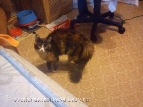 и кстати кот у нас почти как ваша кошечка) только один глаз зеленый, а другой голубой, а шерсть густая очень длинная, но лежит плотно)