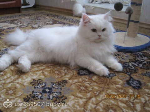 и кстати кот у нас почти как ваша кошечка) только один глаз зеленый, а другой голубой, а шерсть густая очень длинная, но лежит плотно)