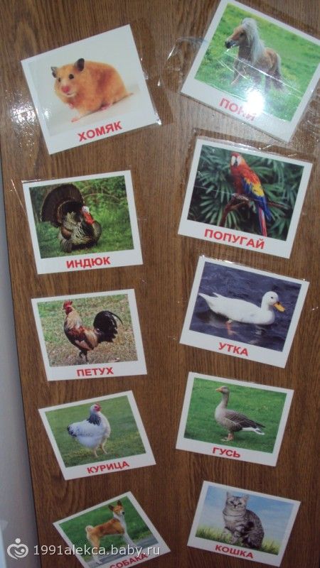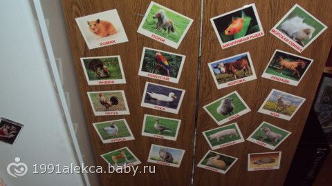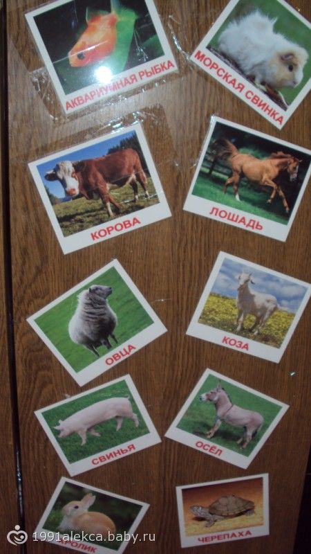 А я сама карточки делала, на каждое животное нашла детский стишок и напечатала с другой стороны ;)))) еще сделали так фрукты и овощи