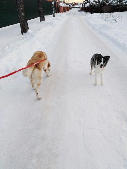 Блин, это вот яркий пример как гуляет нормальная собака (слева) и как гуляет Бэта — только жо.пой вперед, мониторя меня))