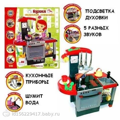 вот она хочет такую кухню… но она ей будет чуть ниже плеч и ей придется сидя играть… а мы с мужем начали искать в интернете кухню для деток 6 лет и вот они то по 3000 и выше… вот они какие..
